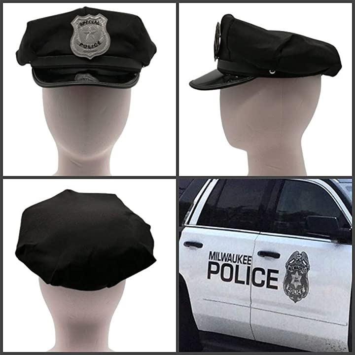 ・刺繍で再現された警察バッチとアメリカンポリス風のキリっと男性らしいブラックカラーがポイント.お手持ちの服や別売りの警官コスチュームと合わせてアメリカンポリスに変身できます。
