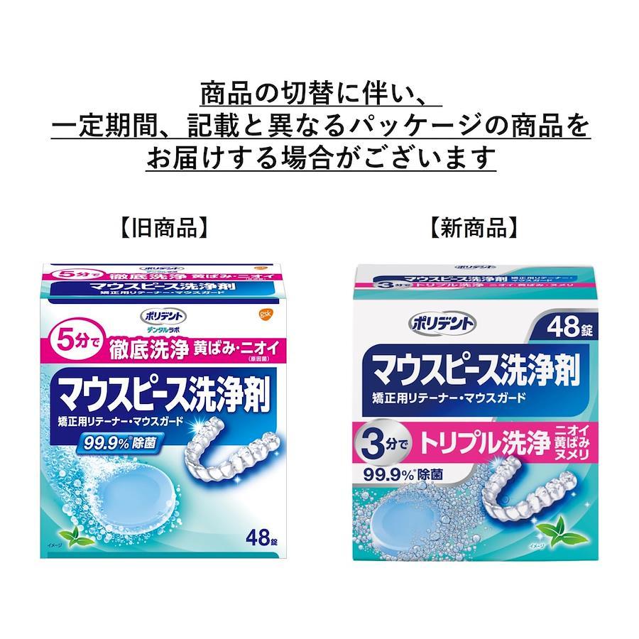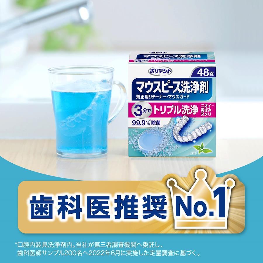 Polident Mouthpiece Cleanser for Orthodontic Retainers, Mouthguards, and Nightguards for Teeth Grinding (48 Tablets) [Recommended by the Japan Dental Association] Reduces Odor, Yellowing, and Slime