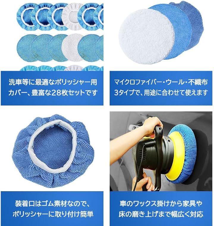 「商品について」 洗車等に最適なポリッシャーカバーの3種セットです。 マイクロファイバータイプ、不織布タイプ、ウールタイプの3種類のカバーのセットなのでどんな場面にも対応可能。