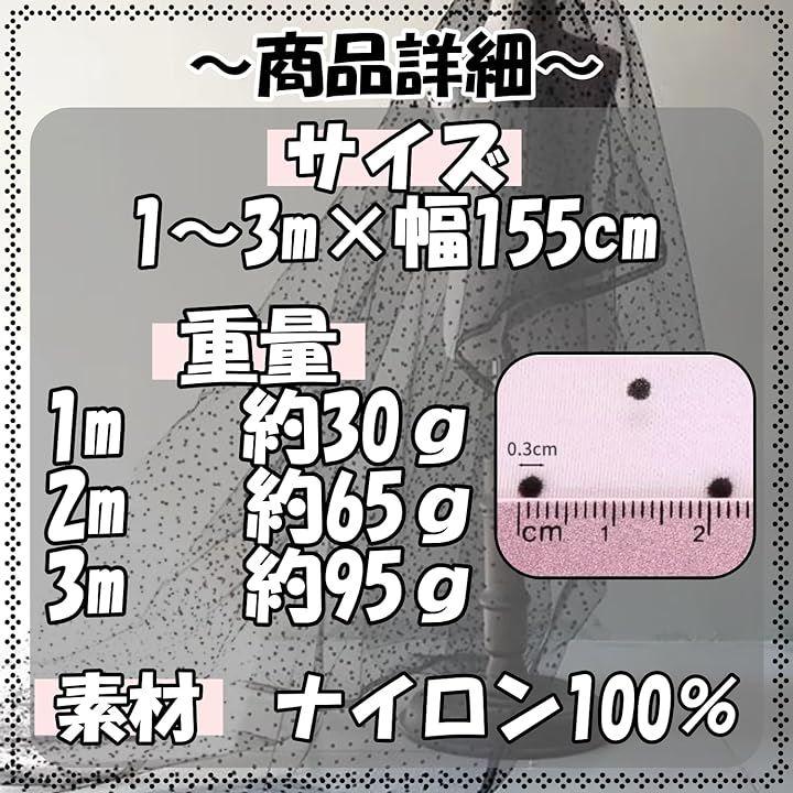 「生地」ナイロン100% 「柄」レーヨン100% 「幅」155cm 「長さ」1m~3m 「ドットのサイズ」 0.3cm