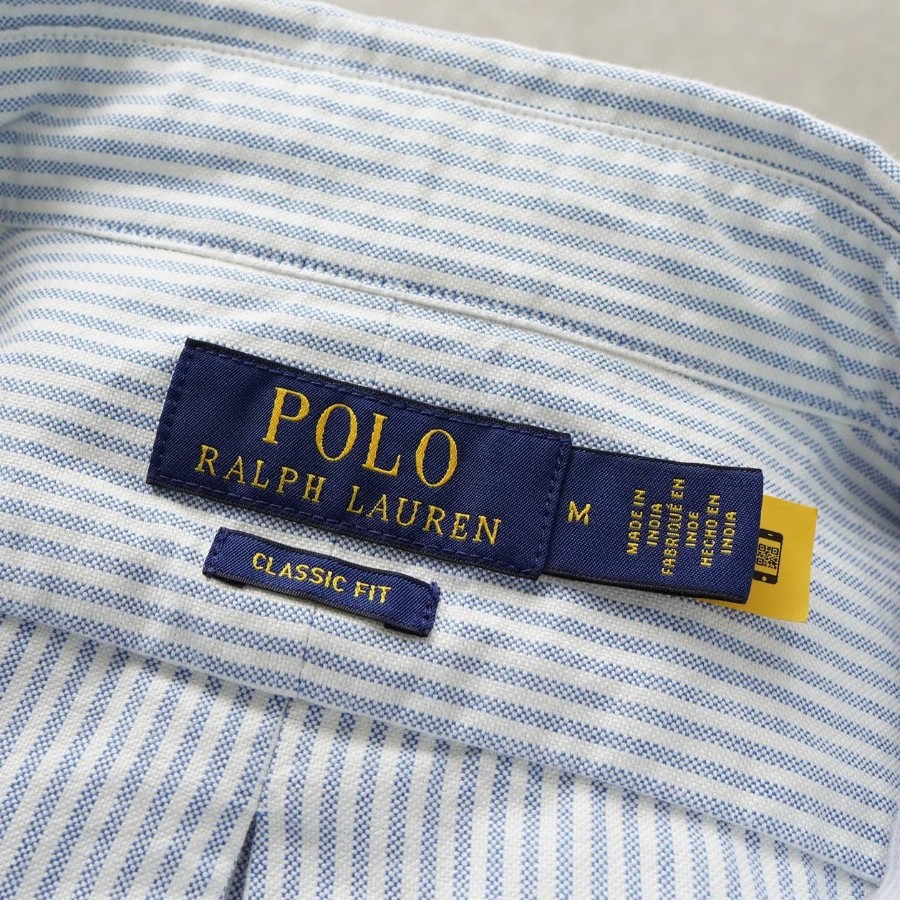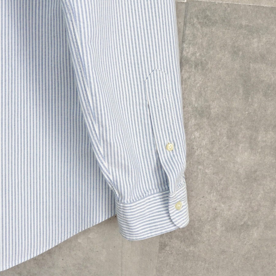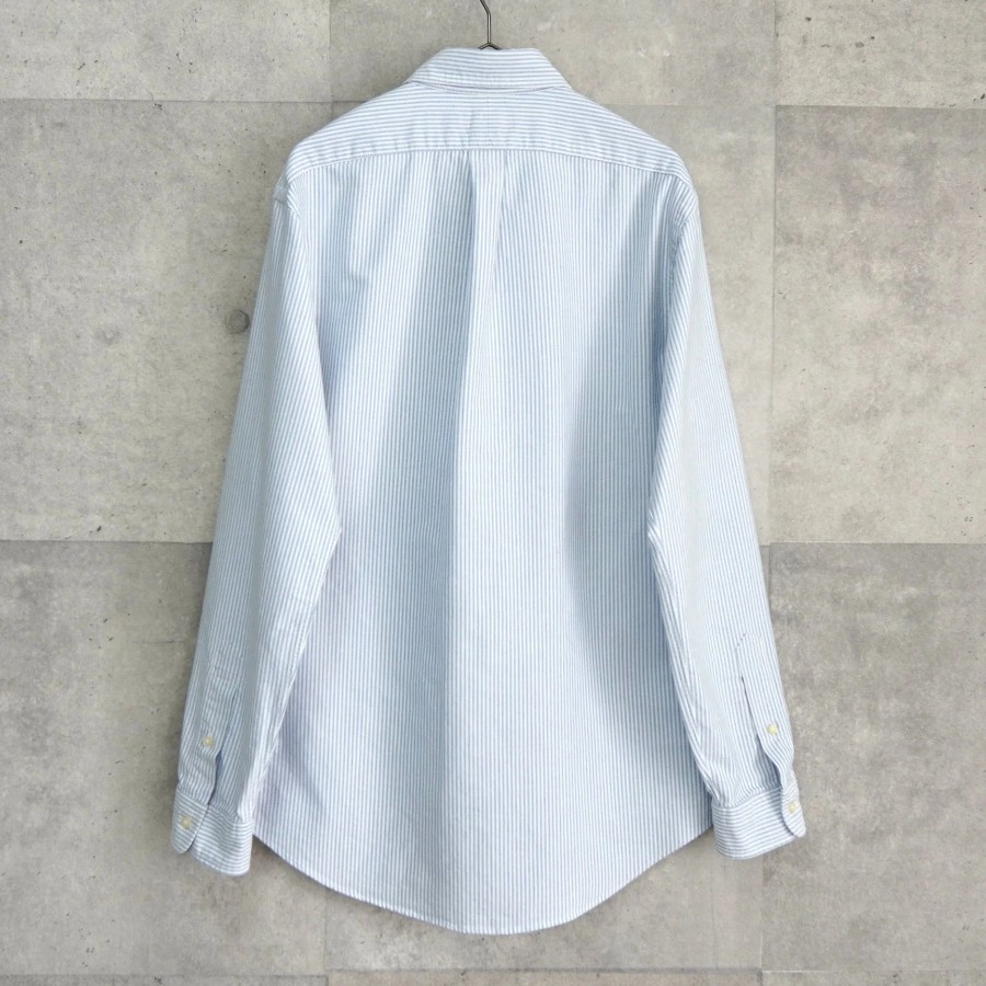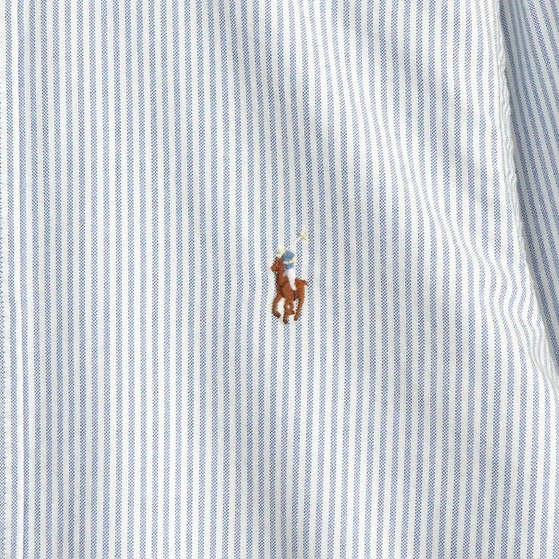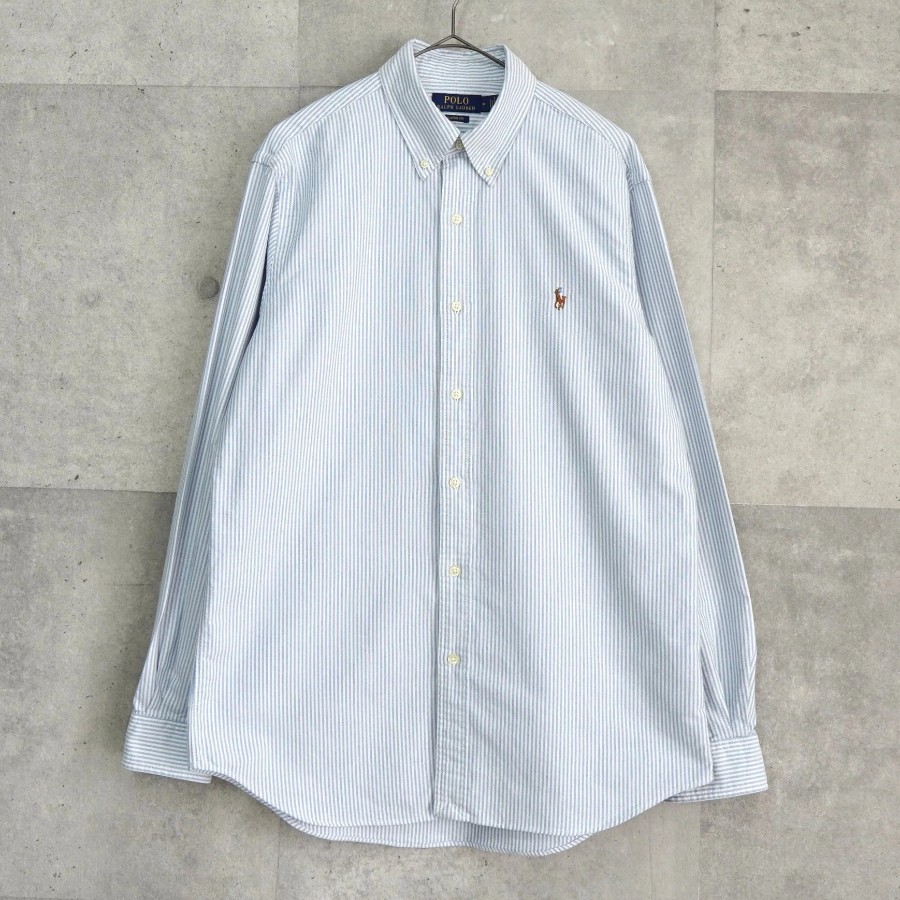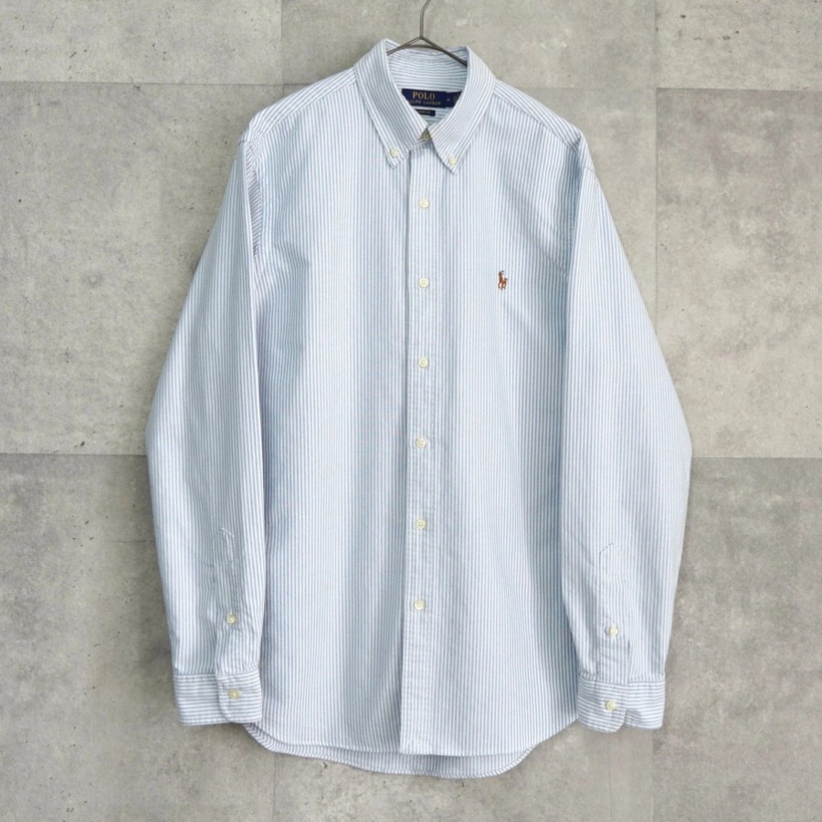 ポロ ラルフローレン スモールポニー ストライプ柄 クラシックフィット ボタンダウン 長袖シャツ ライトブルー / ホワイト メンズ | Brand: POLO RALPH LAUREN | Category: Jacket / Outerwear | Gender: Men's | Color: Light Blue | Material: コットン100% | Condition: Good | Condition Notes: フロントにやや小さな汚れがみられますが、その他は良好なコンディションです。(タグより後の写真参照) | Size: 表記サイズ:M 目安サイズ:メンズ2XL 程度 ※あくまで目安ですので参考程度でお考えください 肩幅:約47.5cm 身幅:約58cm 着丈:約80.5cm 袖丈:約64cm