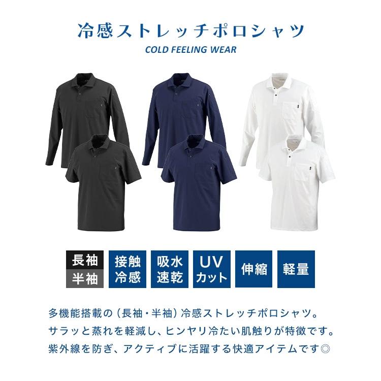 【冷感ストレッチポロシャツ】サラッとした肌触りで爽快な着心地と、ヒヤッと気持ちいい接触冷感素材を使用した機能性ポロシャツ。冷感性に優れたナイロン素材に、接触冷感加工が施されているので冷たくて気持ちいい肌触りを体感できます。また、吸水速乾機能も搭載されているので汗や湿気のベタ付きも気にせず着用できます。生地にはUVカット機能や、上下左右に伸縮するストレッチ機能を備えており、介護や野外作業、スポーツ、アウトドアなど様々なシーンにオススメです。