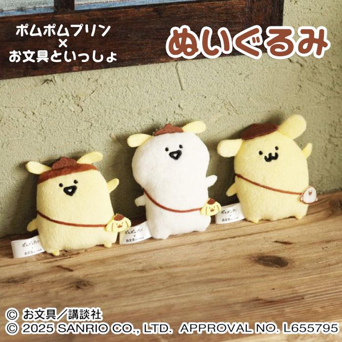 「ポムポムプリン」と「お文具といっしょ」の癒し系コラボイラストを使用した『フラットぬいぐるみマスコット』が登場です。