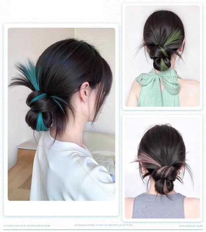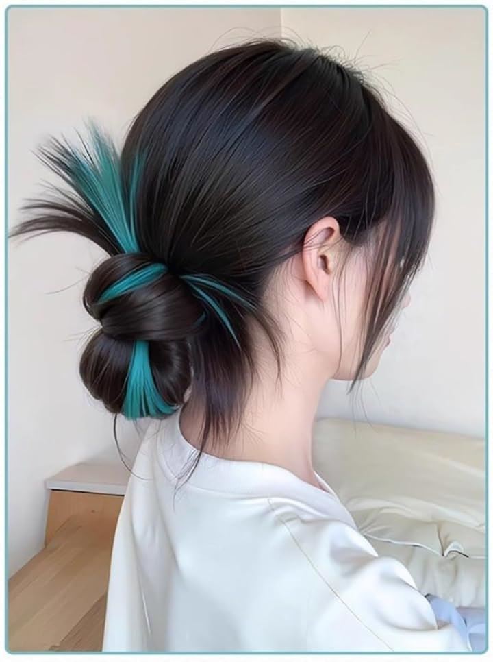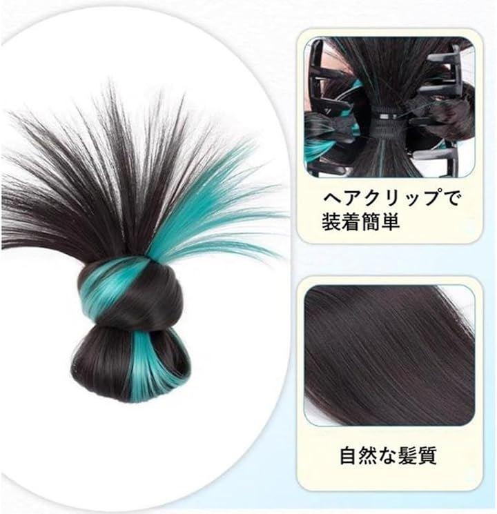 このウィッグは、抜け感のある低めお団子ボブと、黒髪に映えるインナーカラーが特徴です。
