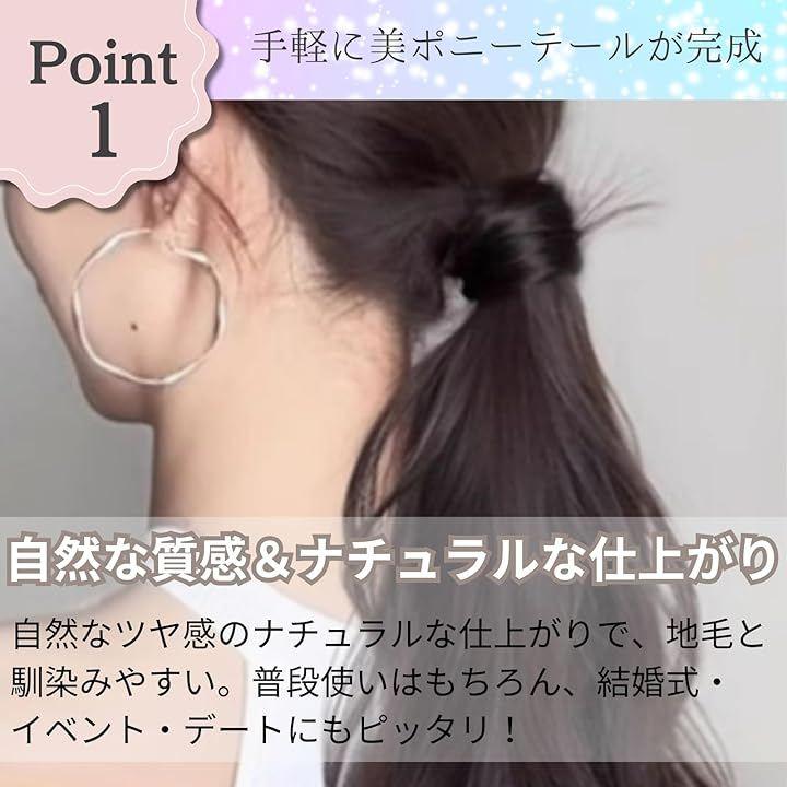 ナチュラルな毛流れと自然なツヤ感で、地毛になじみやすく、簡単にボリュームアップ&イメチェンが可能。