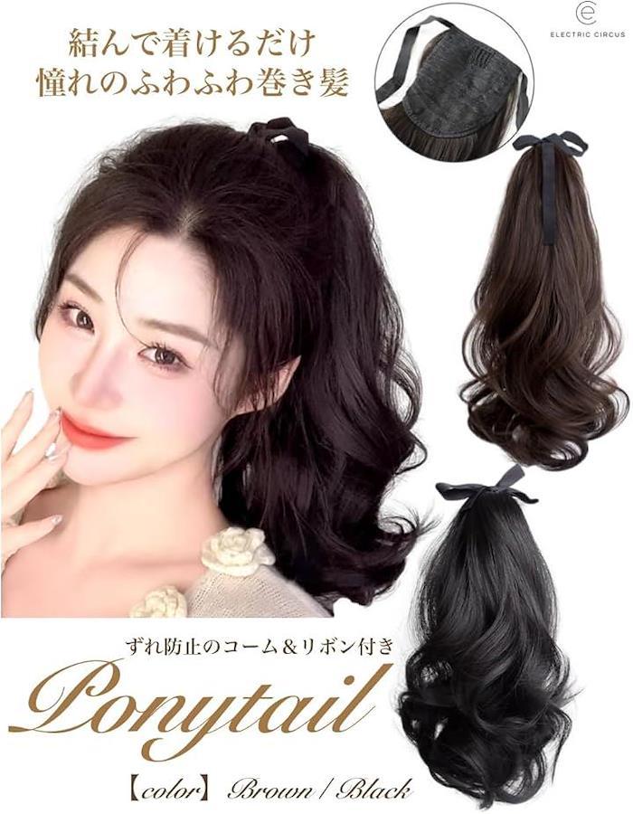 結んで着けるだけで、憧れの可愛いふわふわ巻き髪ポニーテール
