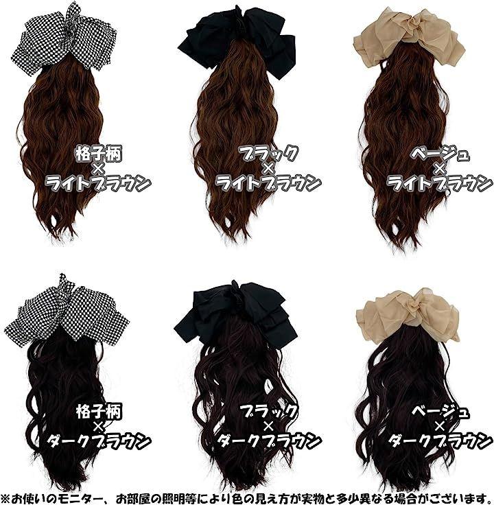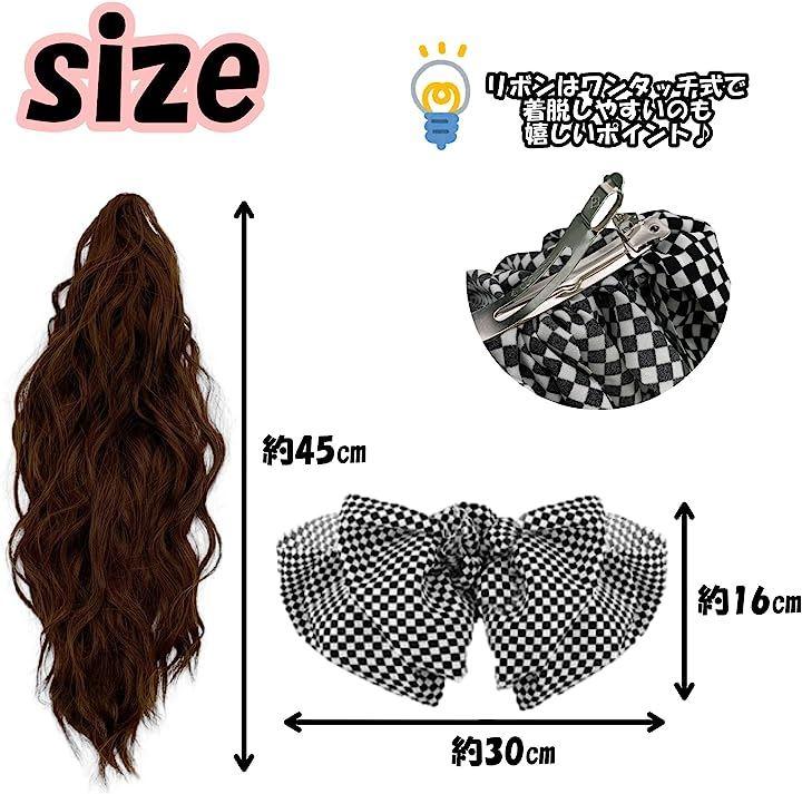 ・取り外し可能な大きなリボン付きのクリップ式ポニーテールウィッグ。