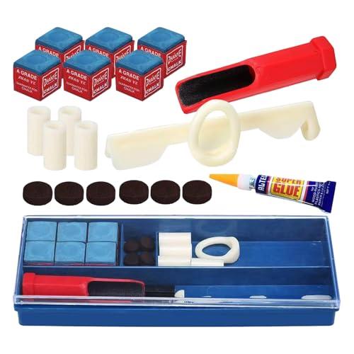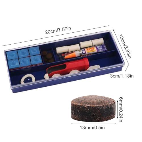 ?キュー修理のための完全な多様性: 当社のビリヤードキュー修理キットは、20 個の高品質アクセサリーを備えた包括的なソリューションを提供します。長期使用に耐える十分な供給量があり、すべてのキューチップ、フェルール、ラップがカバーされています。このさまざまなツールを使用すると、適切な部品を見つける手間が省けます。 ?長持ちするように作られています: 当社のプールキュー修理キットは、長期間使用できる高品質の防錆素材で作られています。卓越した職人技により、簡単に損傷せず、色あせません。この信頼できるツールでキューに新たな命を吹き込みましょう。 ?クイック修理: このユニバーサルプールキュー修理キットは、クラブの修理ニーズを簡単に満たし、通常のクラブに迅速かつ簡単なソリューションを提供します。プロのように修理しましょう。 ?持ち運びと保管が簡単:ビリヤードのキューが破損してゲームを台無しにしないでください。このコンパクトで持ち運びが簡単なプールキュー修理キットをどこにでも持ち運んで、簡単に修理できます。 ?簡単なキューのメンテナンス:当社のプールキュー修理キットは、キューの先端を正確に修正するための手間のかからない方法を提供します。軽量で使いやすく、あらゆるレベルのビリヤードプレーヤーにとって理想的なピックです。互換性と実用的なデザインにより、さまざまな色合いのチップを修理できるため、あらゆるプール愛好家に最適です。
