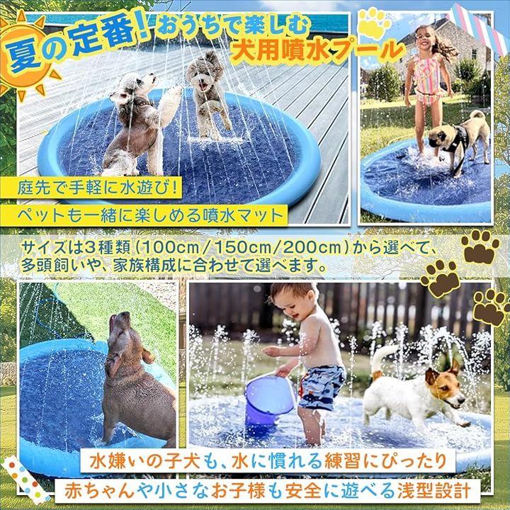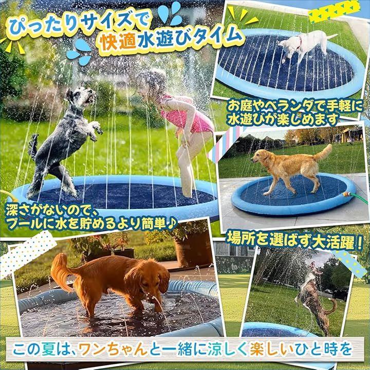 「夏の定番ペットアイテム。噴水マットで楽しく涼しく」 暑さが厳しい夏の外出を控えたい時期でも、自宅の庭で安全・手軽に愛犬と楽しい時間を過ごせます。