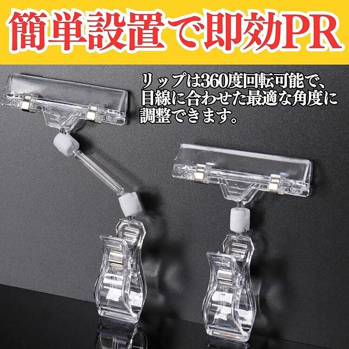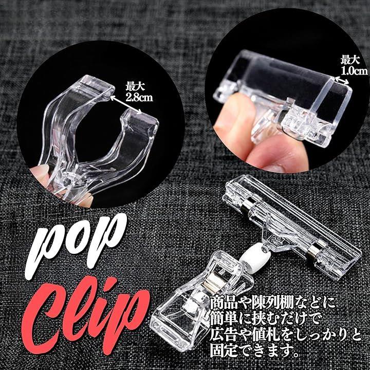 簡単設置で即効PR このポップクリップは、商品や陳列棚などに簡単に挟むだけで広告や値札をしっかりと固定できます。