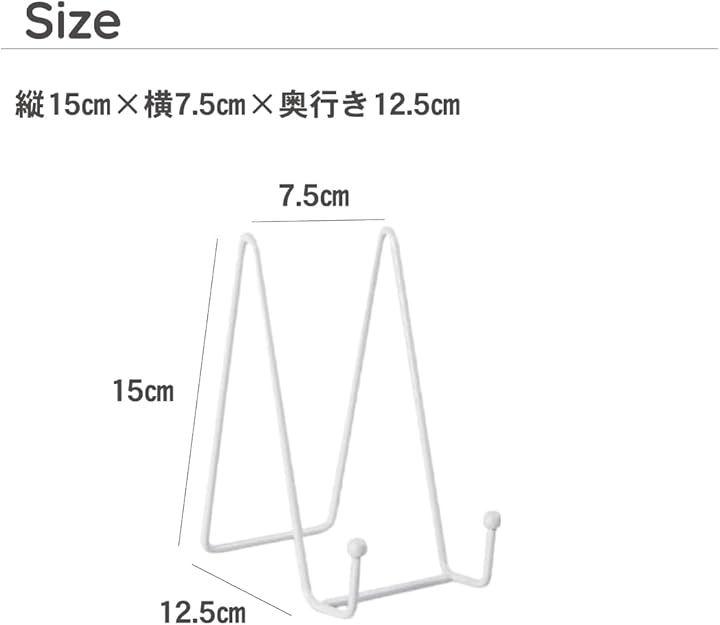 「商品の仕様」 この多機能プレートスタンドのサイズは、縦15cmx横7.5cmx奥行き12.5cmとなっております。