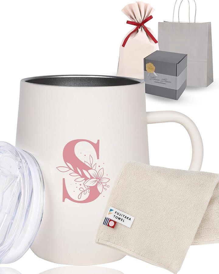 「商品内容」今治認定ハンカチ (サイズ:25x25cm 素材:綿100%) ・取っ手付きステンレスマグカップ (内容量:350ml サイズ:直径 8.8x高さ11cm 素材:本体 304SUS 蓋 AS樹脂/シリコーンゴム) ・専用パッケージ(掛け紙付き) ・専用ラッピングセット *食洗機・電子レンジ使用不可