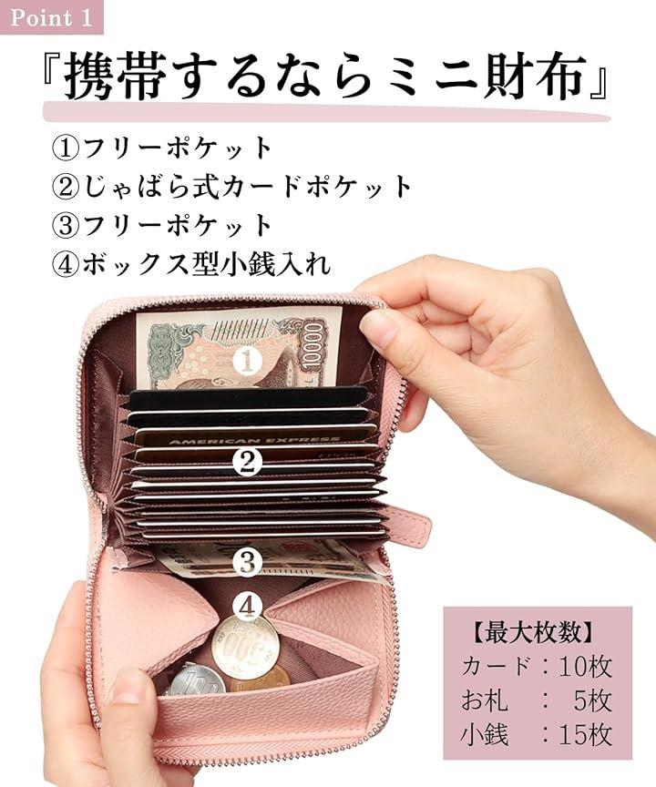 「カード収納 10枚」じゃばら式カードポケットが10枚収納できるカードウォレットです。