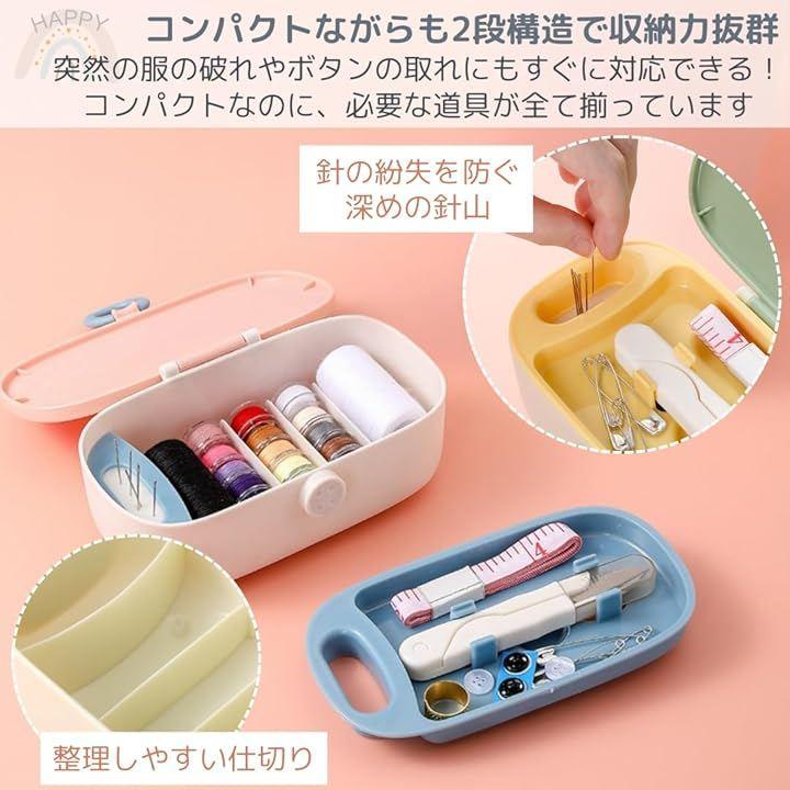 「2段構造で収納力抜群、コンパクトな相棒」突然の服の破れやボタンの取れにも、この携帯用裁縫セットがあれば安心。コンパクトなのに、必要な道具が全て揃っています。