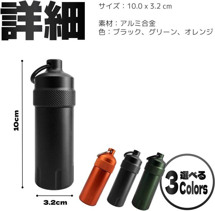 「詳細」サイズ:10.0 x 3.2 cm 有効空間サイズ:7.9 x 2.4cm( 素材:アルミ合金 色:ブラック、グリーン、オレンジ