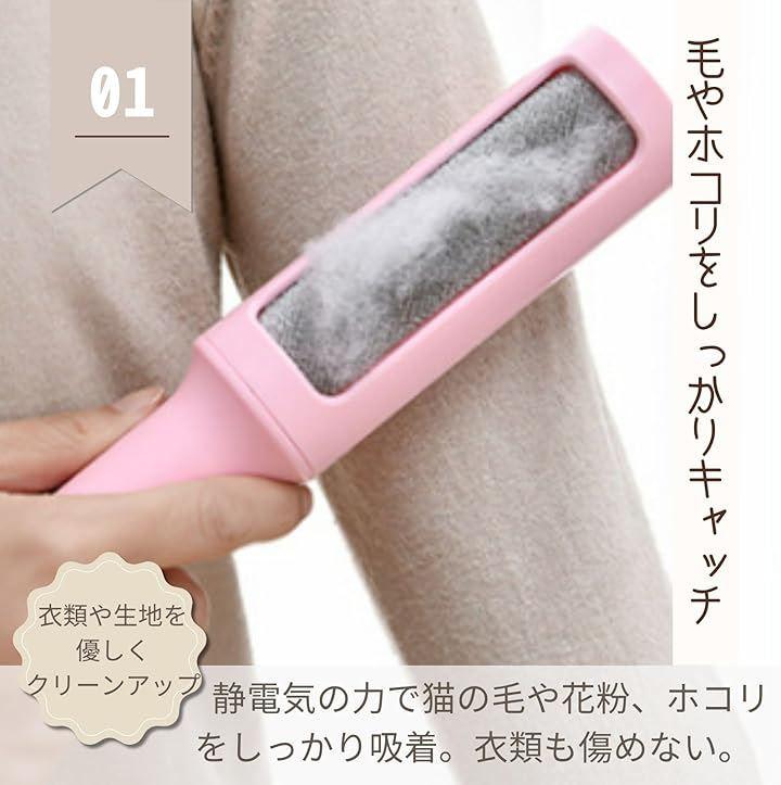 「静電気+回転式ダストボックスで、衣類や生地を優しくクリーンアップ」静電気の力でホコリやゴミを吸着し、繊維を傷めずにクリーニングが可能。