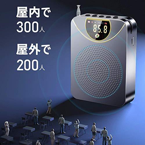 [多機能Bluetooth拡声器]本拡声器メガホンには8つの主要な機能があります。Bluetooth5.0はカバレッジが広く、速度が4倍向上します。TF / USBストレージをサポートし、使用をより便利にします。強力な拡声機能があり、声がかすれることがなくなります。シングルループ、録音機能、ラジオ機能、携帯電話のオーディオ、LEDスクリーンとして機能する多くの強力な機能もあります。[UHFワイヤレスマイク]UHFワイヤレスマイクはペアリングは1秒で完了できます。80Mの長い接続信号を使用すると、干渉や音が詰まりにくく、接続は非常に安定しています。無線信号の浸透が強く、信号は隔壁の後ろでも安定しています。複数のデバイスを互いに干渉することなく同時に使用できます。[高品質のスピーカー]小さくて軽量ですが、5Wのハイパワーを出力でき。音量は屋内で300人、屋外で200人が聞こえるほど大音量です。音を大きくて明瞭に出せますので、音の大きさと音質にも心配がございません。[大容量バッテリー]バッテリーの容量は2600mAhです。フル充電はただ6時間ですが、24-30時間を連続にご使用いただけます。授業中に電力不足を心配する必要はありません。[ダブルノイズリダクション設計]ホストには、ハウリングを効果的に防ぐための組み込みのハウリング防止チップがあります。マイクには、ノイズ低減回路が内蔵されており、突然のハウリングによる恥ずかしさを防ぐために、二重のノイズ低減が行われています。