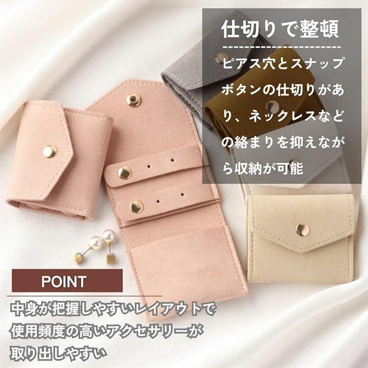 中身が把握しやすいレイアウトで、使用頻度の高いアクセサリーを素早く取り出せ、機能面でも便利なポーチになっています。