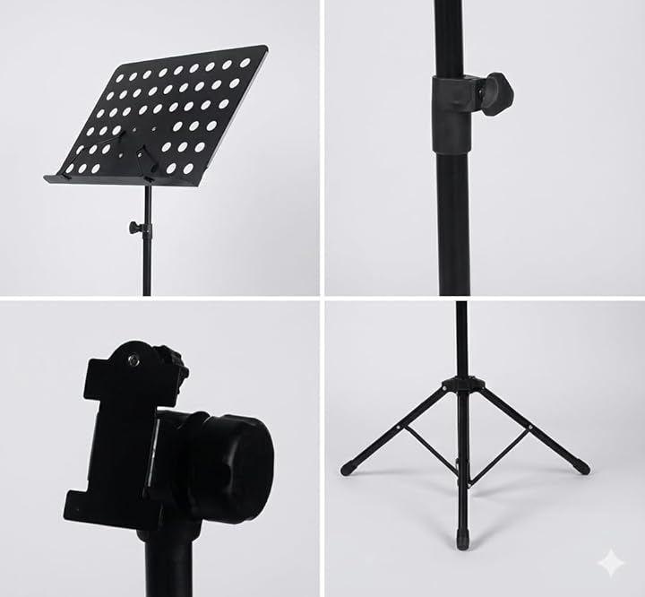 このミュージックスタンドは、高さ調整機能付きで、個々のニーズに合わせられます。