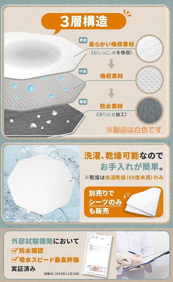 専用シーツが付き 底面の生地を保護するため専用の吸水シーツが付いています。