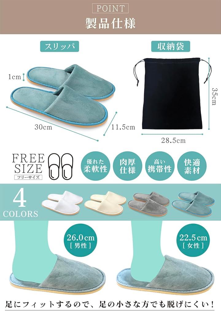 「極上の履き心地」滑り止め付きで歩きやすく 、携帯式でありながら、かさばらないギリギリまでソールを厚くすることで、快適な履き心地を実現したスリッパです。