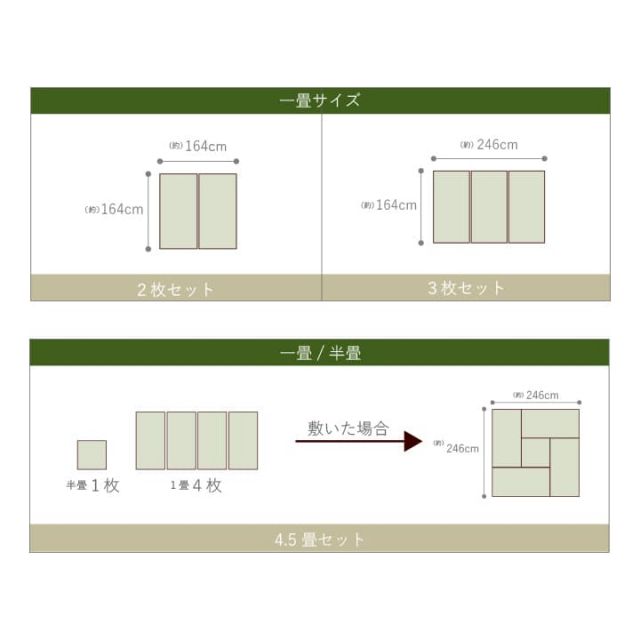 表地=い草中材・裏地=ポリエステル100%【固綿】ヘリ=PP・PE※連結ジョイント付き