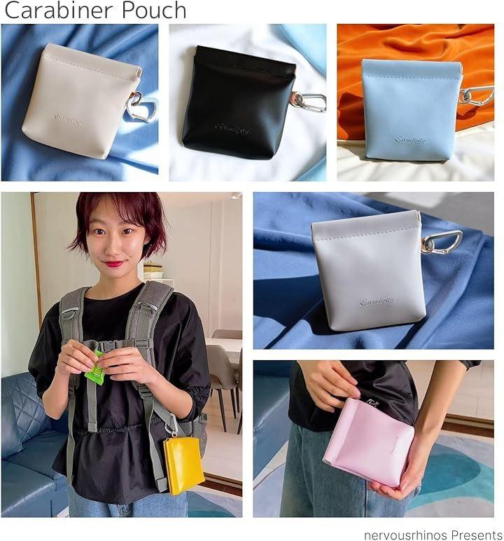 「商品仕様」 内容:ポーチx1、カラビナx1、ジップ袋x4 の6点セット サイズ:ポーチ 約12cm x 12cm(正方形タイプ)