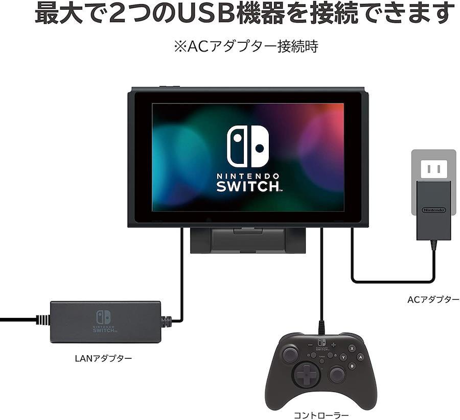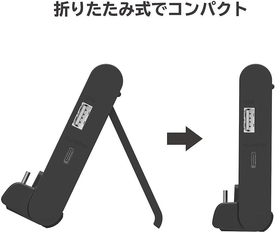どこでも周辺機器を接続して遊べる折り畳み式充電スタンド2つのUSBポートを搭載しており、有線コントローラ、キーボード、LANアダプター等の周辺機器を接続して使用することができます。*ACアダプター接続時純正の「Nintendo Swich ACアダプター」を使用し、Nintendo Swich/Nintendo Switch Lite本体をテーブルモードでプレイしたまま充電することができます。コンパクトなので持ち運びに便利です。
