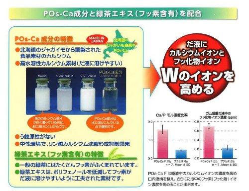 3営業日以内に発送≪新品未開封品≫Pos-Ca成分の特長<br> ●北海道のジャガイモから調整された食品素材のカルシウム。<br> ●高水溶性カルシウム素材が唾液に溶けやすい。<br> ●う蝕原性がない。<br> ●中性環境で、リン酸カルシウム沈殿形成抑制効果。<br> ●北海道のジャガイモから調整された食品素材のカルシウム。 <br><br> 緑茶エキス(フッ素含有)の特長<br> ●一般の緑茶にはたくさんフッ素が含まれています。<br> ●緑茶エキスは、ポリフェノールを低減してフッ素が唾液に溶けやすいように工夫された素材です。<br><br> 【選べる3種のフレーバー】<br> ペパーミント:お口に広がるミントの爽快感<br> マスカット:フルーティーで爽やかな味わい<br> ストロベリー:ミントを含んでいないので、お子様にもオススメです