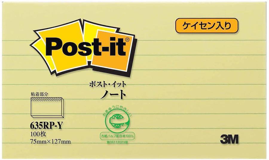 ●ふせんサイズ:75x127mm。 たっぷり書き込める大判サイズのポストイット付箋。詳しい伝言や記録、掲示や在庫整理などに便利なサイズです。●くり返し貼ったりはがしたりでき、相手をいためません。●7mm間隔で罫線(ライン)をプリントしています。項目整理がしやすいので、やることメモを見やすく書くことができます。長文のメモや伝言などがきれいに書けて便利です。●100枚x1パッド。●色:イエロー●リサイクル:古紙パルプ配合率100%の再生紙を使用。●エコマーク取得。●グリーンマーク取得。グリーン購入法適合。●GPNエコ商品ねっと掲載。