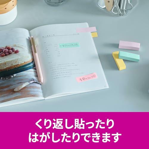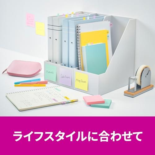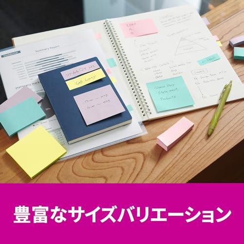 "Color your story" ポストイットの豊富なカラーバリエーションが、毎日を鮮やかに彩り、仕事や毎日の生活を楽しく、効率的に。約2倍の粘着力*で垂直面にもしっかり貼れ、くり返し貼ったりはがしたりできます。*ポストイット 通常粘着製品比カラフルな4色のセットなので、色で識別したり、書いた部分を目立たせたりすることができる。カラー:グリーン・イエロー・オーキッドフロスト・ピンクサイズ:50×15mm 枚数:45枚×8パッド