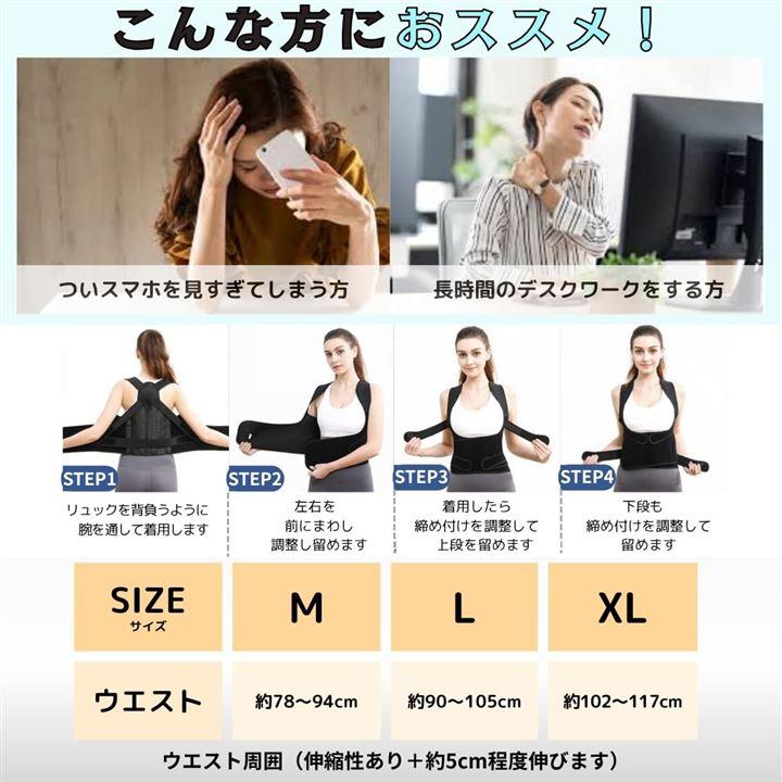 長時間の座り仕事やスマートフォン操作によって、猫背や腰への負担が気になる方におすすめの「姿勢補正ベルト」です。