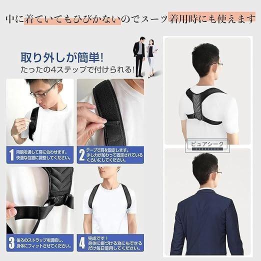 肩甲骨開き式猫背サポートベルトですらりとした立ち姿に。 長さ調整可能。