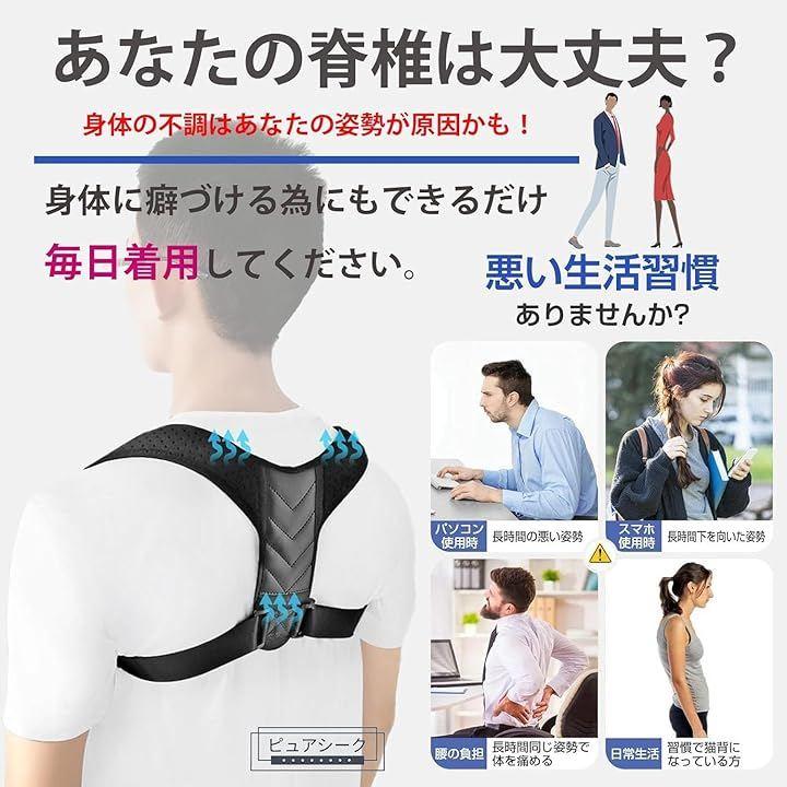 「背筋シャキッ。独自構造で強力サポート」一般的な姿勢ベルトとは異なり、背中ラインに沿った立体構造で背筋をしっかりサポート。