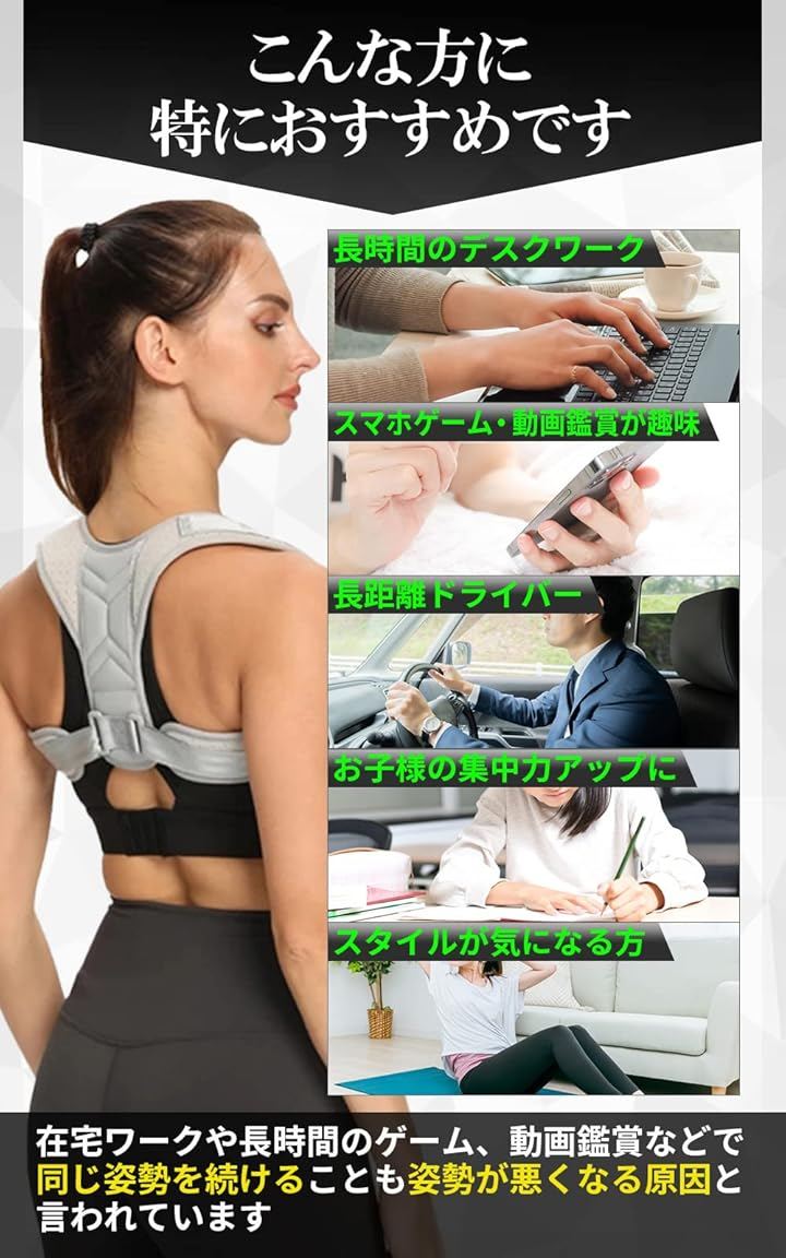 長時間のデスクワークやスマホ操作で猫背になりがちな方におすすめ。