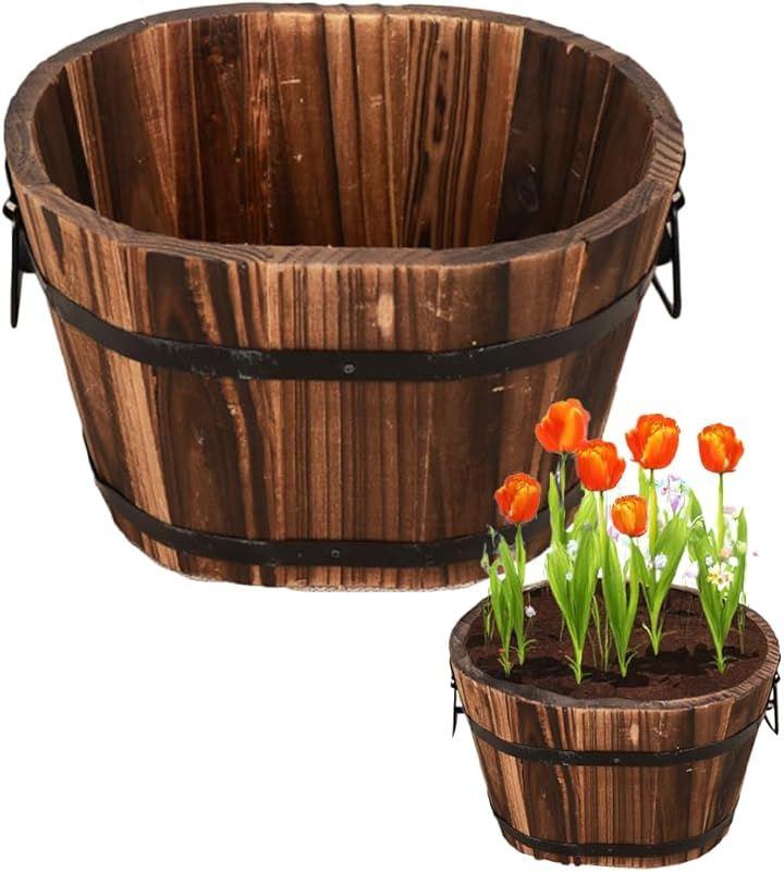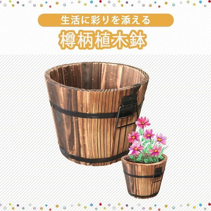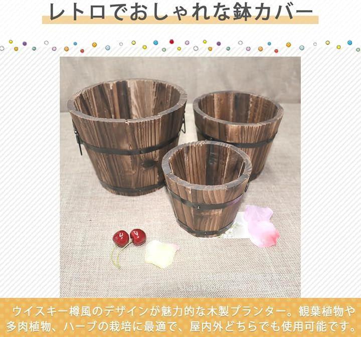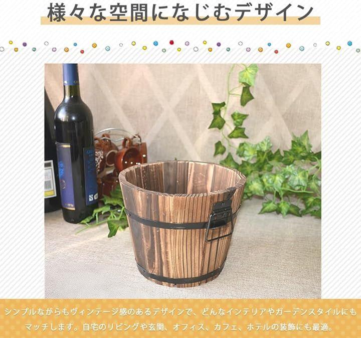 「レトロでおしゃれな鉢カバー」ウイスキー樽風のデザインが魅力的な木製プランター。