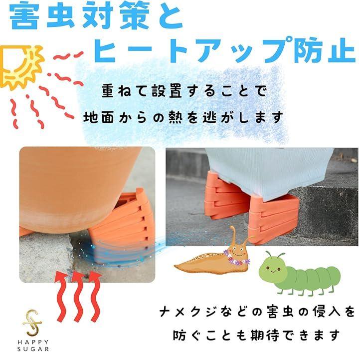 「害虫対策とヒートアップ防止」 ポットフィートを重ねて設置することで、地面からの熱を逃がし植物の健康維持につなげることができます。