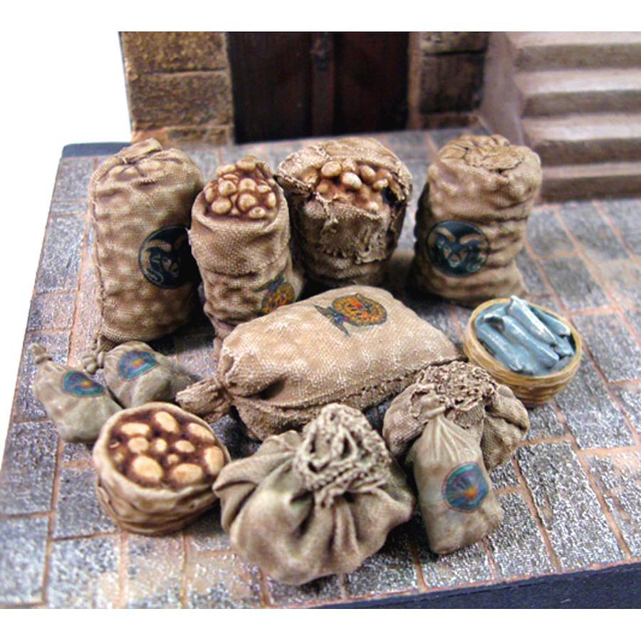セット内容・・・じゃがいも、野菜の入ったサック計12ヶ、デカール素材・・・レジン、この商品は未塗装です。写真はメーカー提供の組立塗装済み完成作例です。