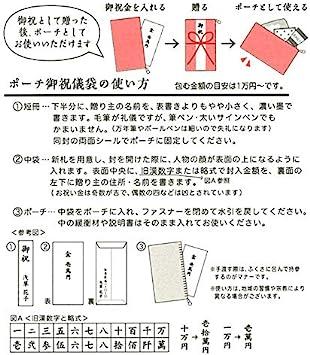 御祝金にプラス! 本体がポーチになっています。 御祝として贈った後、ポーチとして再利用できます。 ◇本体サイズ:縦185×横105mm ◇ポーチ素材:ポリエステル(外生地・内生地) ◇セット短冊(4種):御祝・御入学祝・祝御成人・御就職祝 ※説明書入り ※商品画像は、実際の商品と、色味が多少異なる場合もございます。また、掲載上各パーツの比率は同一ではありません。予めご了承ください。◇本体サイズ:縦185×横105mm◇ポーチ素材:ポリエステル(外生地・内生地) ◇セット短冊(4種):御祝・御入学祝・祝御成人・御就職祝※説明書入り