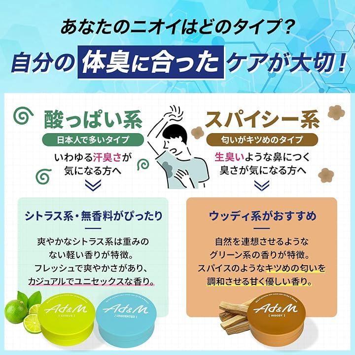 「ワキガの臭いタイプに応じた徹底ケア」汗の臭いが気になる方には、フレッシュで爽やかな香りが特徴の「シトラス」か、香りが苦手な方や子供さんにもおすすめな「無香料」を。
