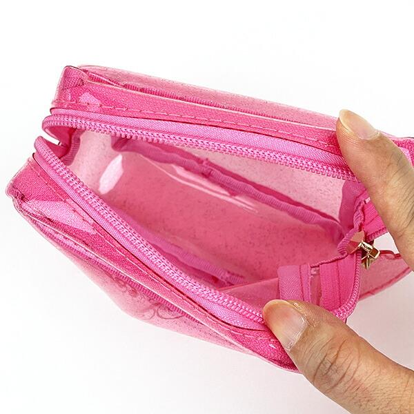 マチがあるので、コスメなど厚みがあるものも収納できます。クリア素材にラメでキラキラのデザインがとっても可愛い!