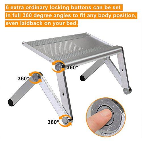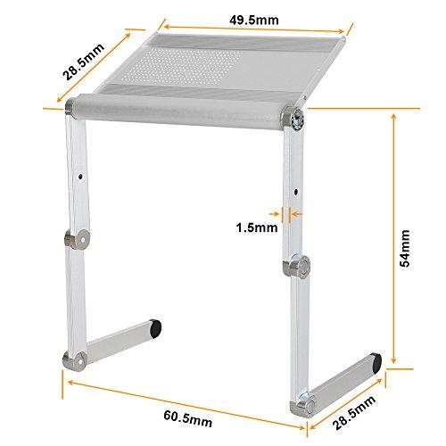 ソファー・ベッド・デスクなど、様々なシーンでお使いいただける、薄くて軽いアルミ製折りたたみ式のラップトップデスクです。違う場所や用途や対象などによって、様々のニーズを満足します。天板はW49.5×D28.5cm幅広設計で、 14、15、16インチのノートPC、雑誌、新聞等にご利用可能です。全面的に光沢のアルミ製で、スタイリッシュなデザインになっています。 ? 312個の通気口で空気をまんべんなく分配、机の上にそのまま置くより、放熱効果が格段にあがり、ノートパソコンの熱暴走を防げます。312個の通気口で空気をまんべんなく分配、机の上にそのまま置くより、放熱効果が格段にあがり、ノートパソコンの熱暴走を防げます。ボタンを押しながら動かす。ボタンを押しながら動かす。高さを調整する前に、調整する高さの値を確認して、両側のジョイントが平行で対称になるようにしてください。 または、正確な高さを調整できるように周囲の人を手伝ってもらいます。ご注意:関節に36個の歯車止めが有ります。歯車を正しく噛み合わせなければ、手がボタンから離しても、ボタンが上がらない場合も有ります。そういう時は足を軽く動かしてください。折りたたみ機能もあるし、立てかけて使えます。ノートパソコンを長時間使っていて、腰痛や肩こり、目の疲れに悩まされてる方にオススメ!ご注意:本体の重心がうまくいかない状態で利用しないでください。