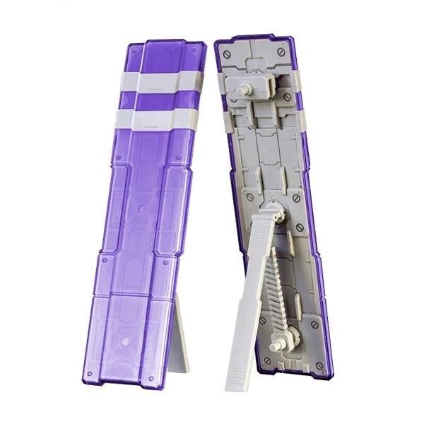 プラム プラアクト・オプション・シリーズ10:双盾(ソウジュン) 4(クリアパープル) クリアパープルはオフホワイトのモールドが透けて見えるのが特徴です。身を隠す程の2つの大盾を自立させて障害物として自由に配置が出来ます。両腕に装備させたり、プラアクトの手に持たせることが出来ます。各パーツには3mmジョイント、盾の裏面には3箇所のハードポイントを有し、幅広いミキシングが可能です。盾同士を縦横に連結させたり、スライドジョイントを使って広げて固定することも出来ます。【セット内容】盾×2、自立スタンド×2、ハンドル付きジョイント×2、ハンドルスライドジョイント×2(C)PLUMPMOA全高:約120mmプラスチックモデル用パーツ※キットは別売りです。