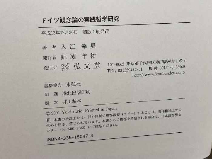 商品名:ドイツ観念論の実践哲学研究 弘文堂 入江 幸男