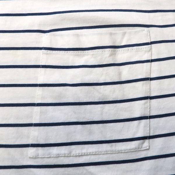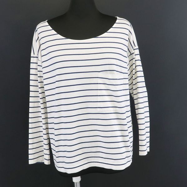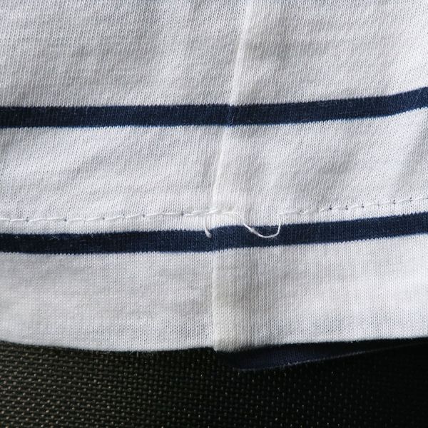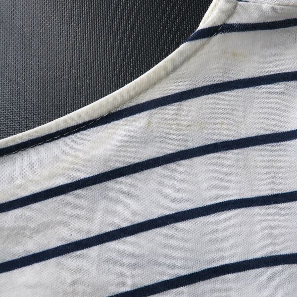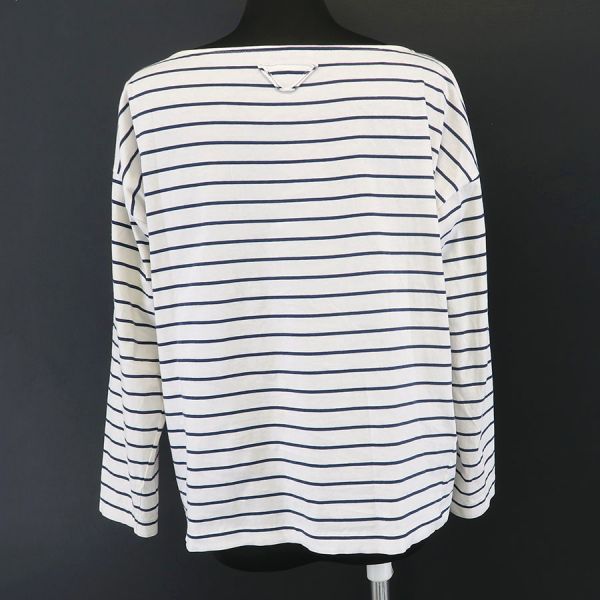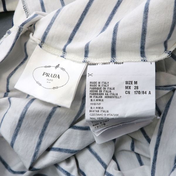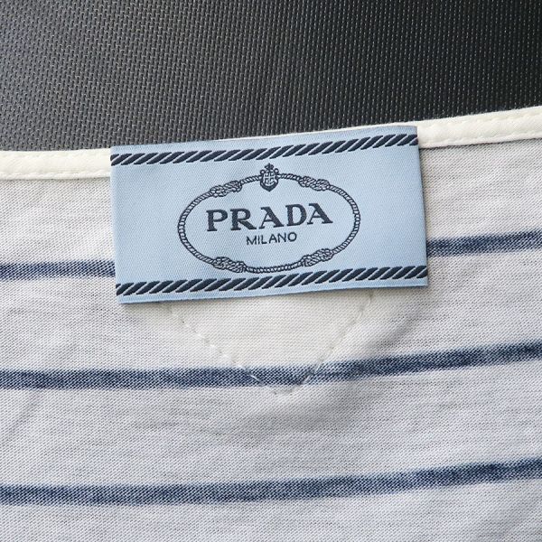 ■採寸#M 肩幅55cm 袖丈42cm B102cm 着丈55cm■素材綿100%■コメントプラダより白×紺ボーダー柄のカットソーが入荷いたしました。右肩に汚れと、左右の脇にうっすらと汗染み、左肩から袖にかけてうっすらと汚れがあります。着用感はありますが、通常使用は可能かと思われます。薄手で透け感があるので、インナーがあると安心です。お気軽にお問合せくださいませ。