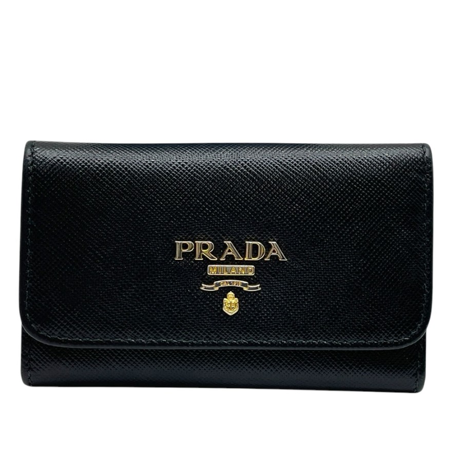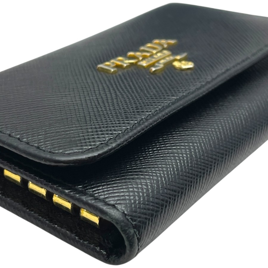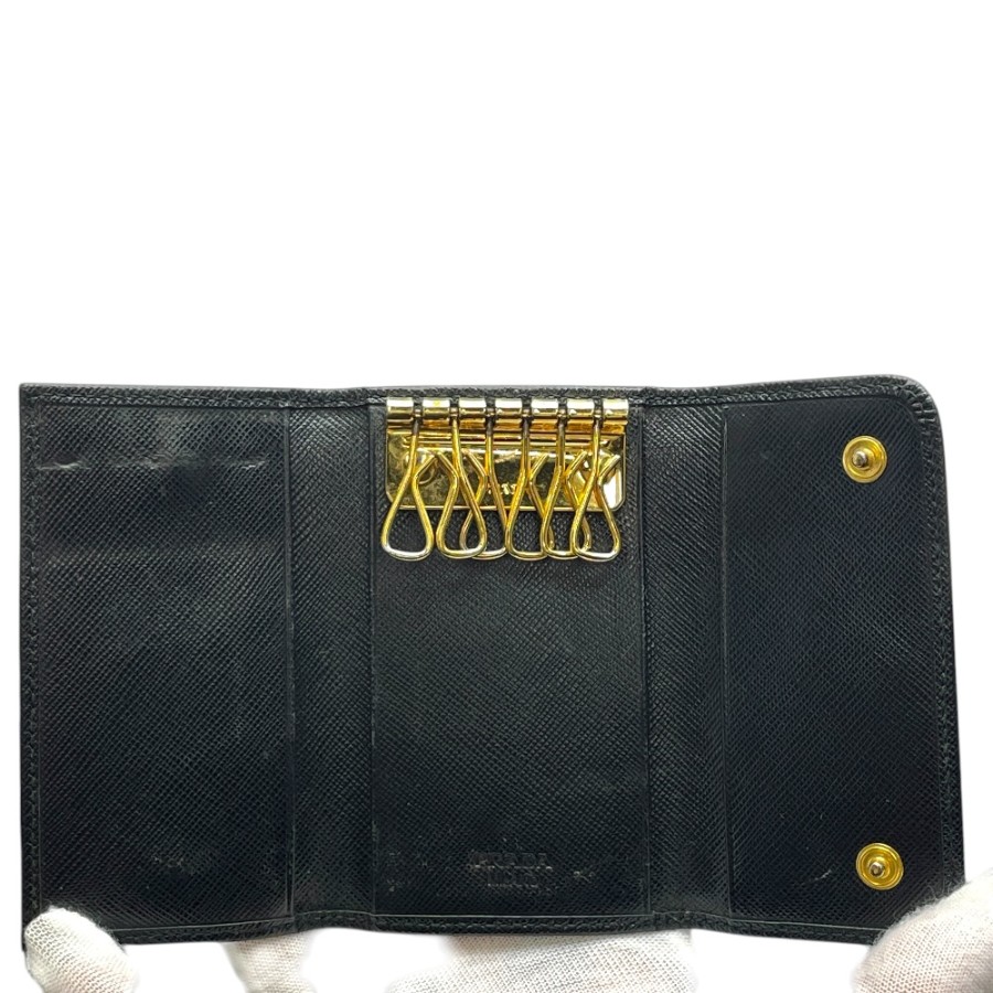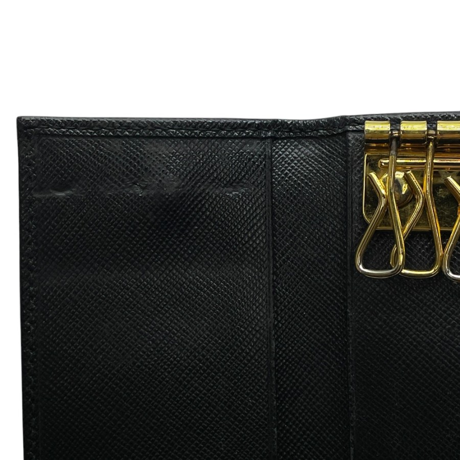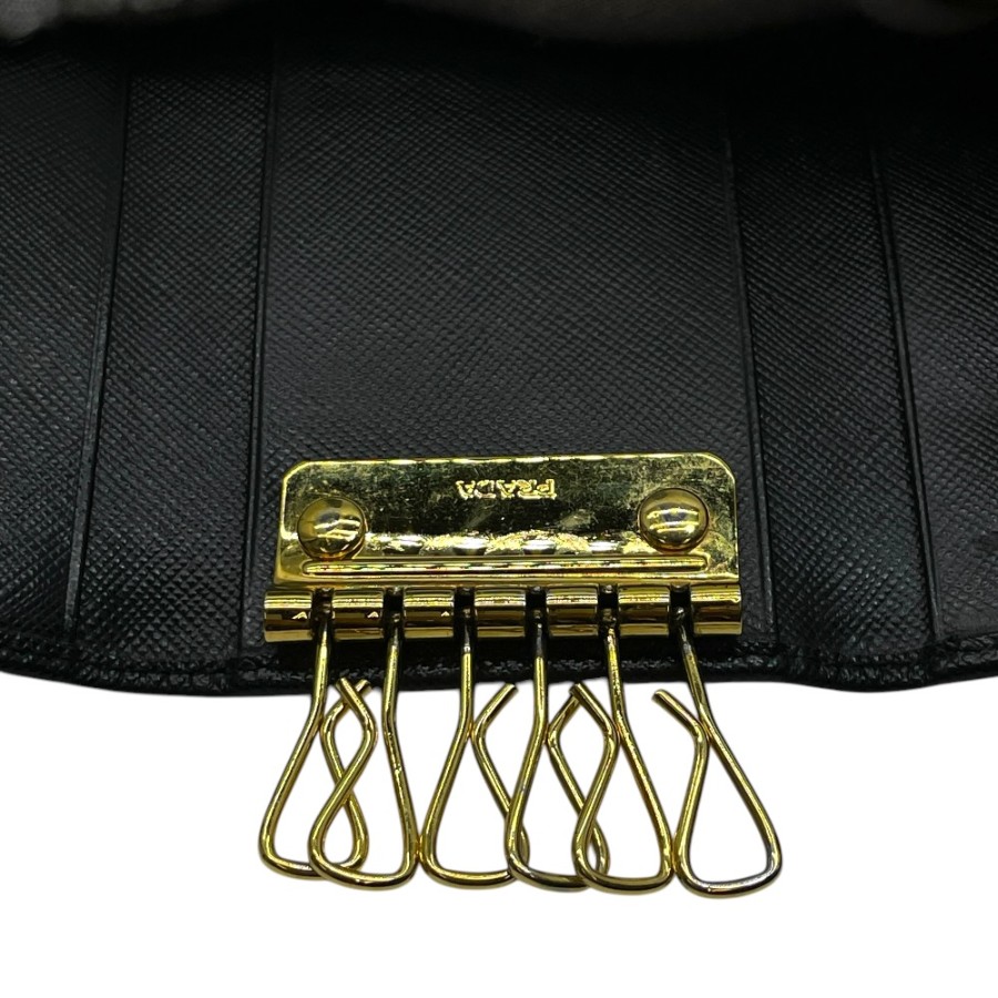 【ブランド】PRADA プラダ【商品名】6連 キーケース【商品番号】1M0222【カラー】ブラック/ゴールド【サイズ】横:10.5cm 縦:6.5cm 奥行:1.5cm【素材】レザー【付属品】箱【ランク】B(使用感有一般中古)【コメント】外側:角スレ/キズ/金具小傷(小) 内側:押し跡/スレ/薄汚れ/金具小傷(写真参照)【管理番号】0403a0818o商品情報