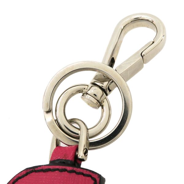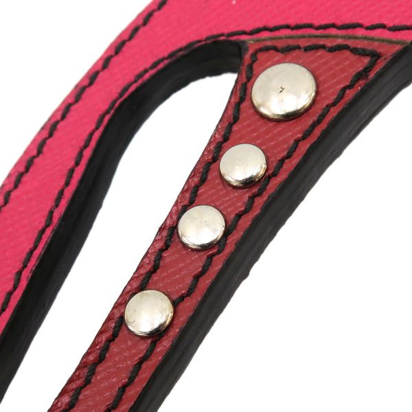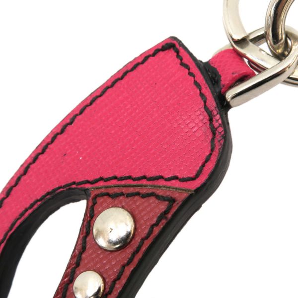 プラダ キーホルダーのご紹介です。ピンク×ブラウンカラー(シルバーカラーのスタッズ付き)スティレットヒール型、サフィアーノレザー仕様のキーホルダーになります。フック金具やキーリング部分はシルバーカラーになります。バッグの取り付けてチャームとしてもお使いいただけますね☆状態はBランク。反りなど型崩れ、表面に小さな汚れ、金具類に小キズなどが見受けられます。大きなダメージは少なめです。プラダ キーホルダーはいかがでしょうか☆