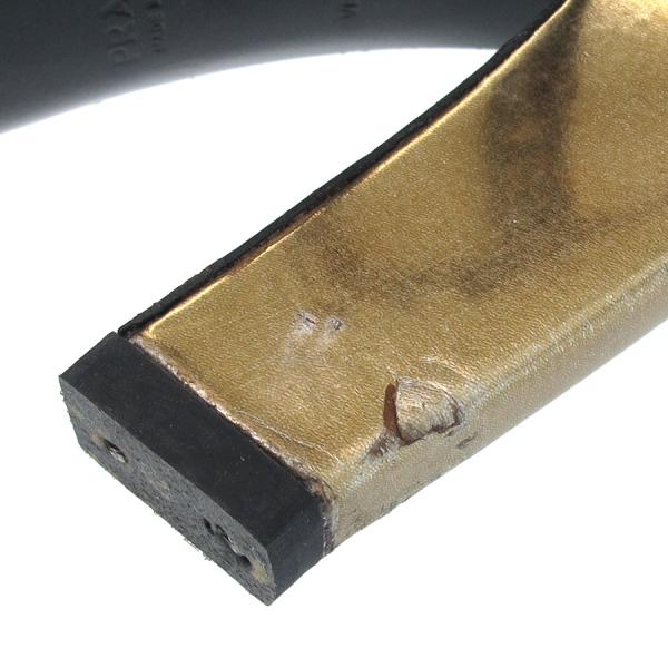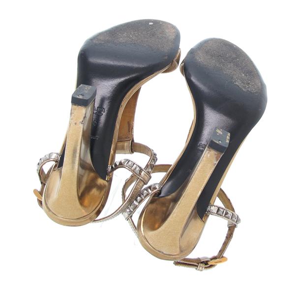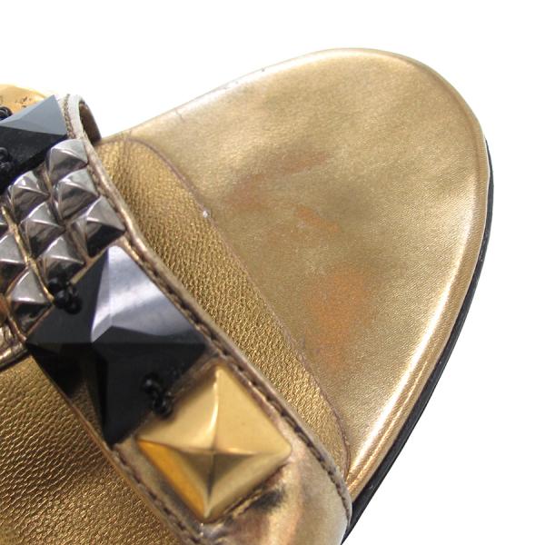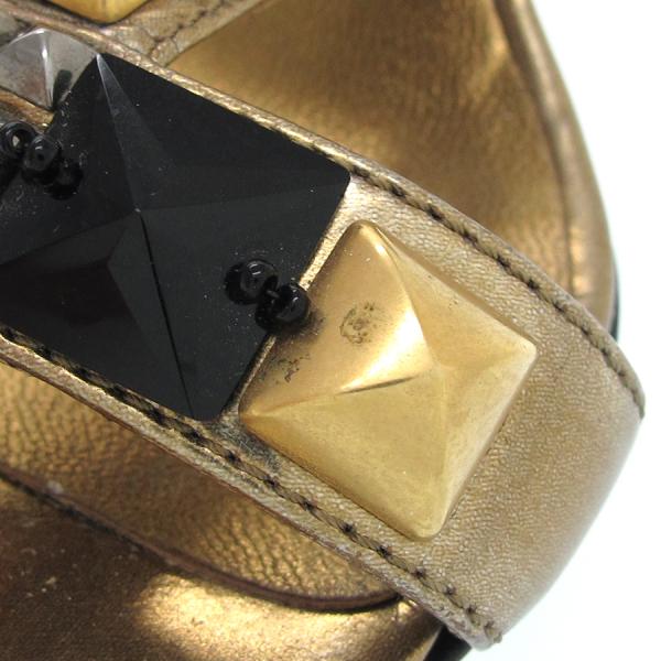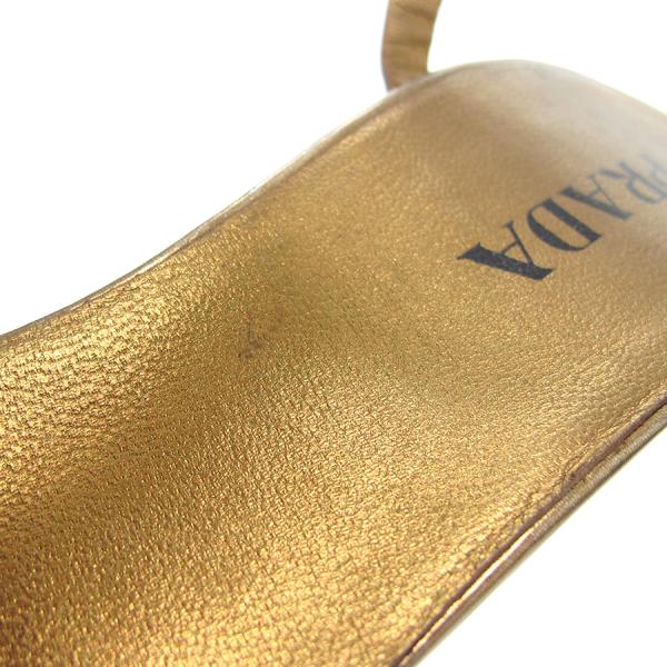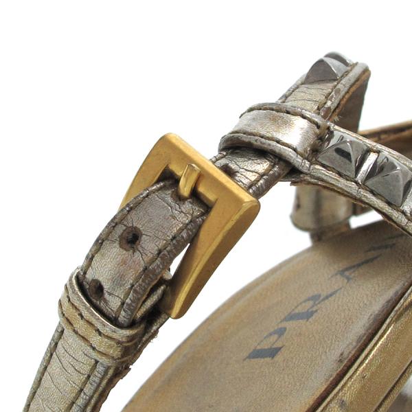 ■採寸#35(日本サイズ約22cm)甲幅7.5cm ヒール高10cm人気のプラダから金色のストラップサンダルが入荷しました。つま先に足指跡、中敷やバックベルトに使用感、スタッズ飾りにはクスミも見られヒールにもキズが見うけられ使用感は強めなのでBランクからのおススメですがスタッズデザインや金色の配色がプラダらしいですね◎お問い合わせお待ちしています。