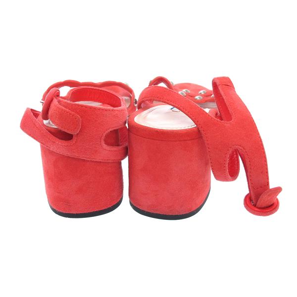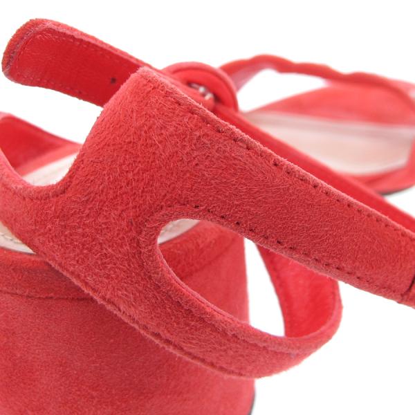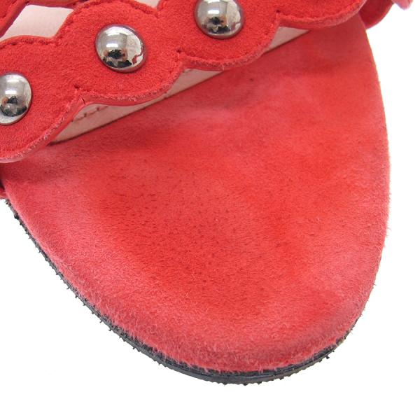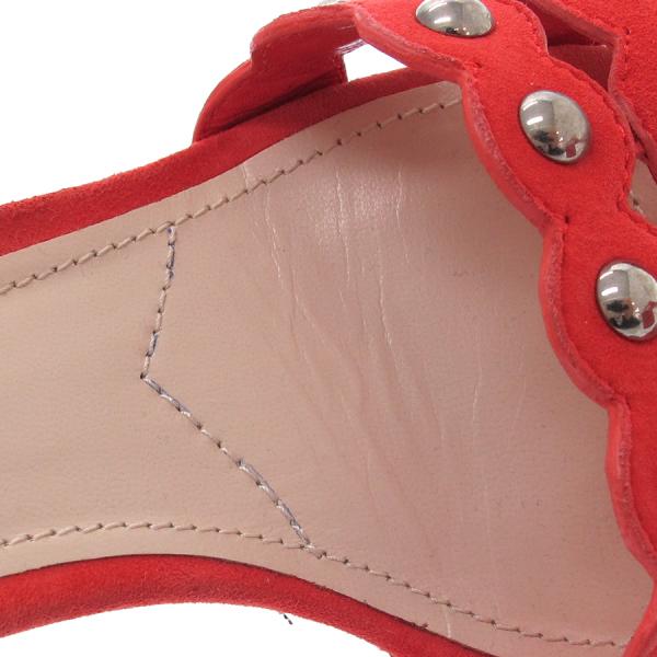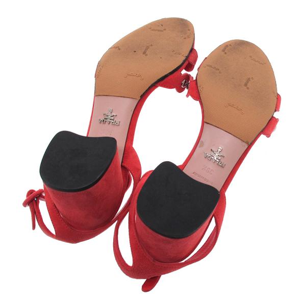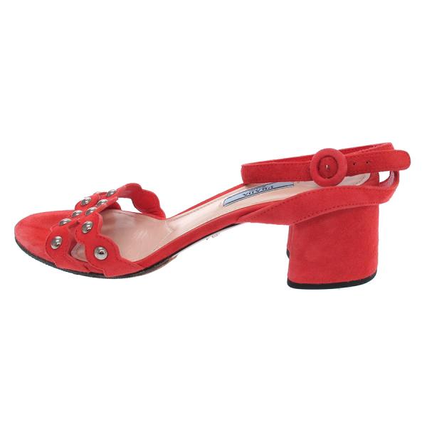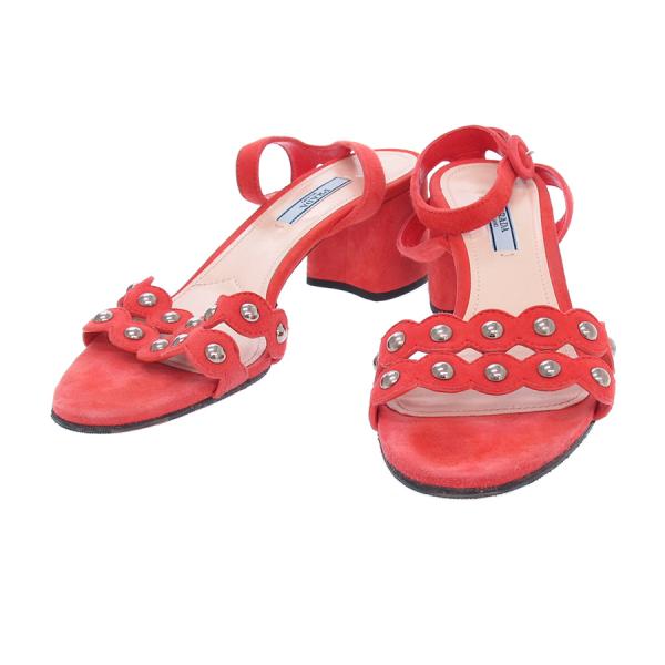 ■採寸#391/2 (日本サイズ約26.5cm) 甲幅8cm ヒール高6cmプラダブランドからオレンジ色にも見えるピンク色のサンダルが入荷しました。スエード調なのでつま先に指跡ダメージが見受けられ足首のベルト部分や全体的にもスレが見られますのでBランクからのご案内です。お問い合わせお待ちしています。