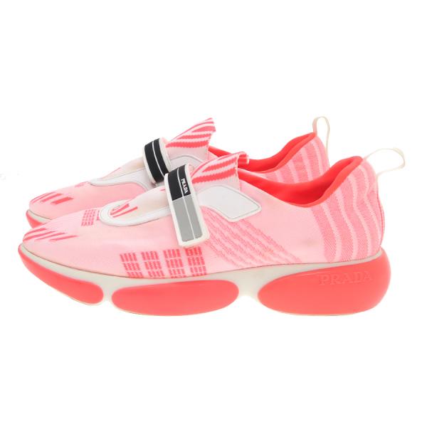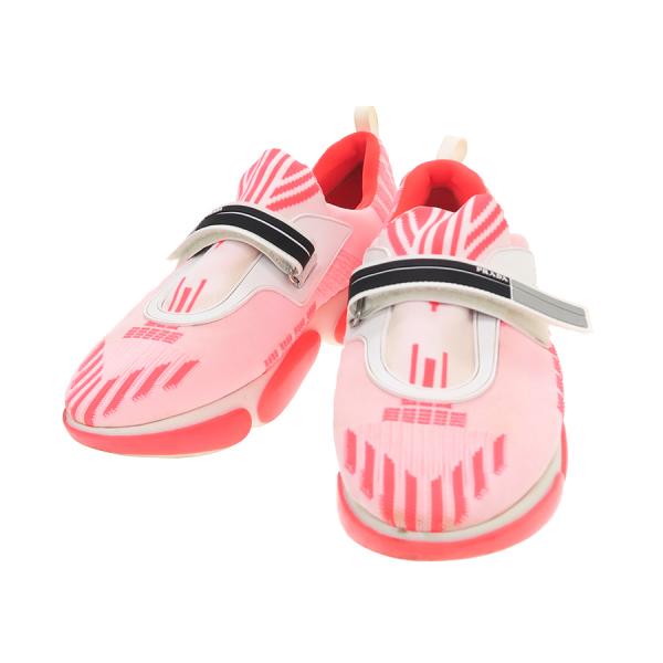 プラダからスニーカーが入荷しました。スポーティなデザインではっきりとした色味で素敵です。マジックテープで留められる着脱が楽な一足です!甲ゴム黄ばみ、履き口黄ばみ、靴底ダメージ、ヒールすり減りがあり使用感強めです。お買い得になっておりますのでお気軽にお問い合わせください。